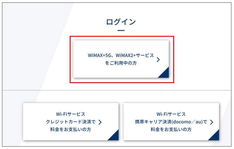 - 「WiMAX+5G、WiMAX2+サービスをご利中の方」をクリックします。