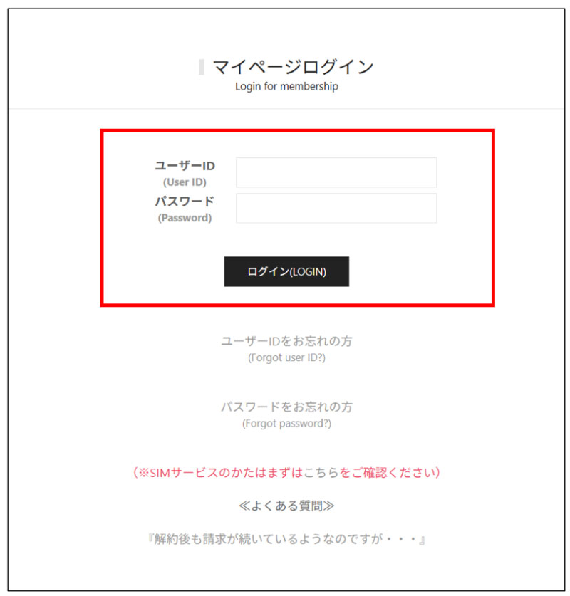 - 申込用紙に記載の「ユーザーID」と「パスワード」でログインしていただきます。